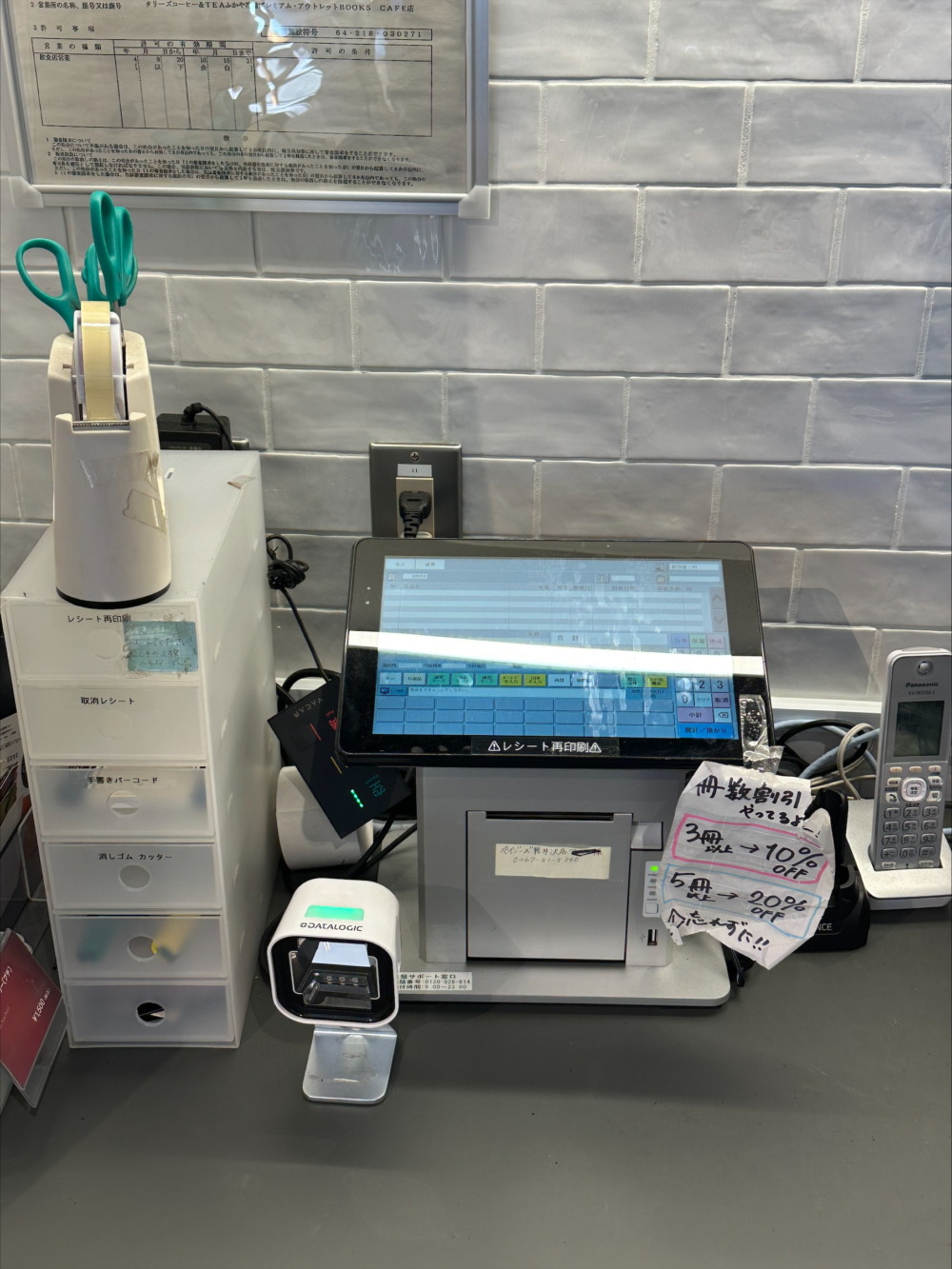 書籍の清算は、タリーズのレジコーナーに光和コンピューターの小型POS レジ「K-POS ミニ」を設置して行っている。やはり光和の店舗管理ASP システム「BookAnswerⅣ」を利用することで、ふかや花園店の仕入れは、PAGES 軽井沢店から販売・在庫情報をシステムで確認し、八木書店の船橋商品センターに発注。納品された書籍の陳列はタリーズのスタッフが行っている。