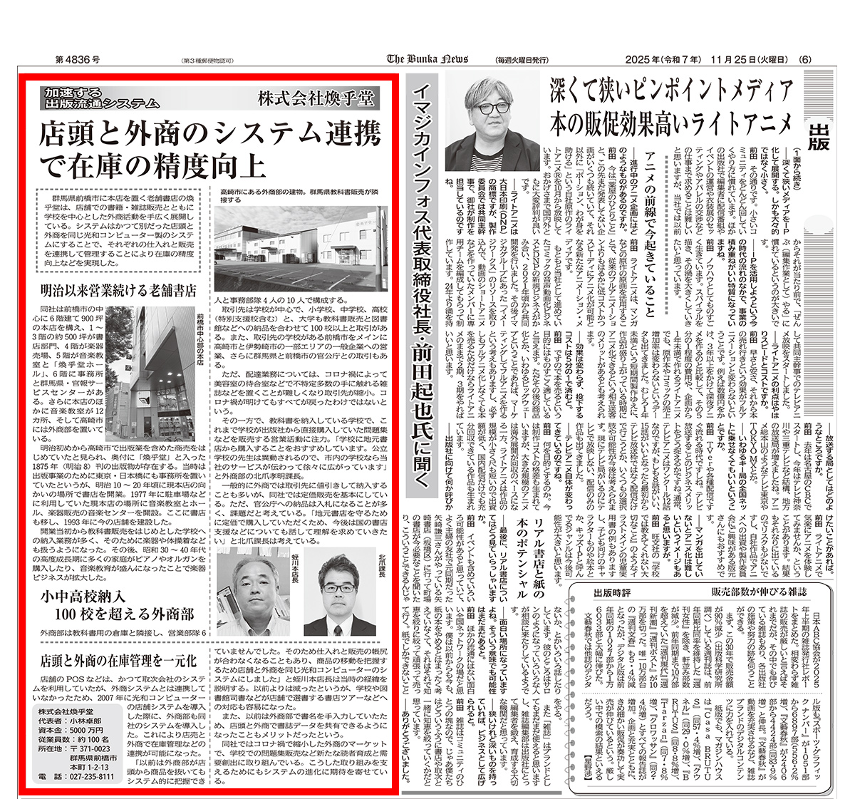 文化通信に「株式会社煥乎堂 店頭と外商のシステム連携で在庫の精度向上」掲載