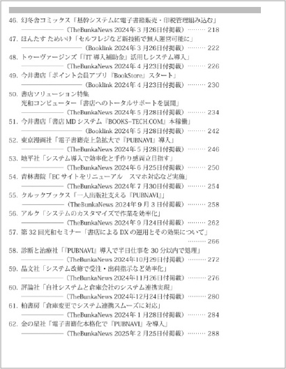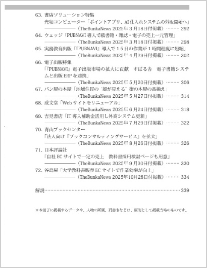 本書に収録した事例は 2020 年から 2025 年までの間に文化通信社が発行する『B.B.B』『TheBunkaNews』、『Booklink』の各媒体に連載「加速する出版流通システム」や特集として掲載した記事と、光和コンピューターが開催したセミナーの載録などである。