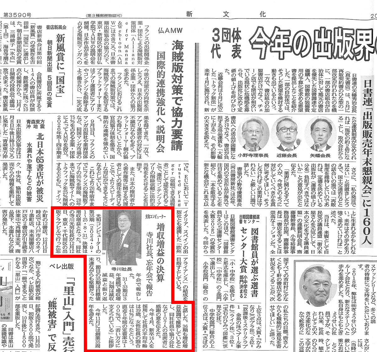 3. 新文化に「光和コンピューター 増収増益の決算 寺川社長、忘年会で報告」掲載